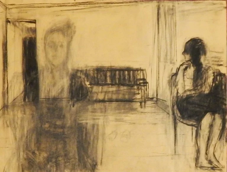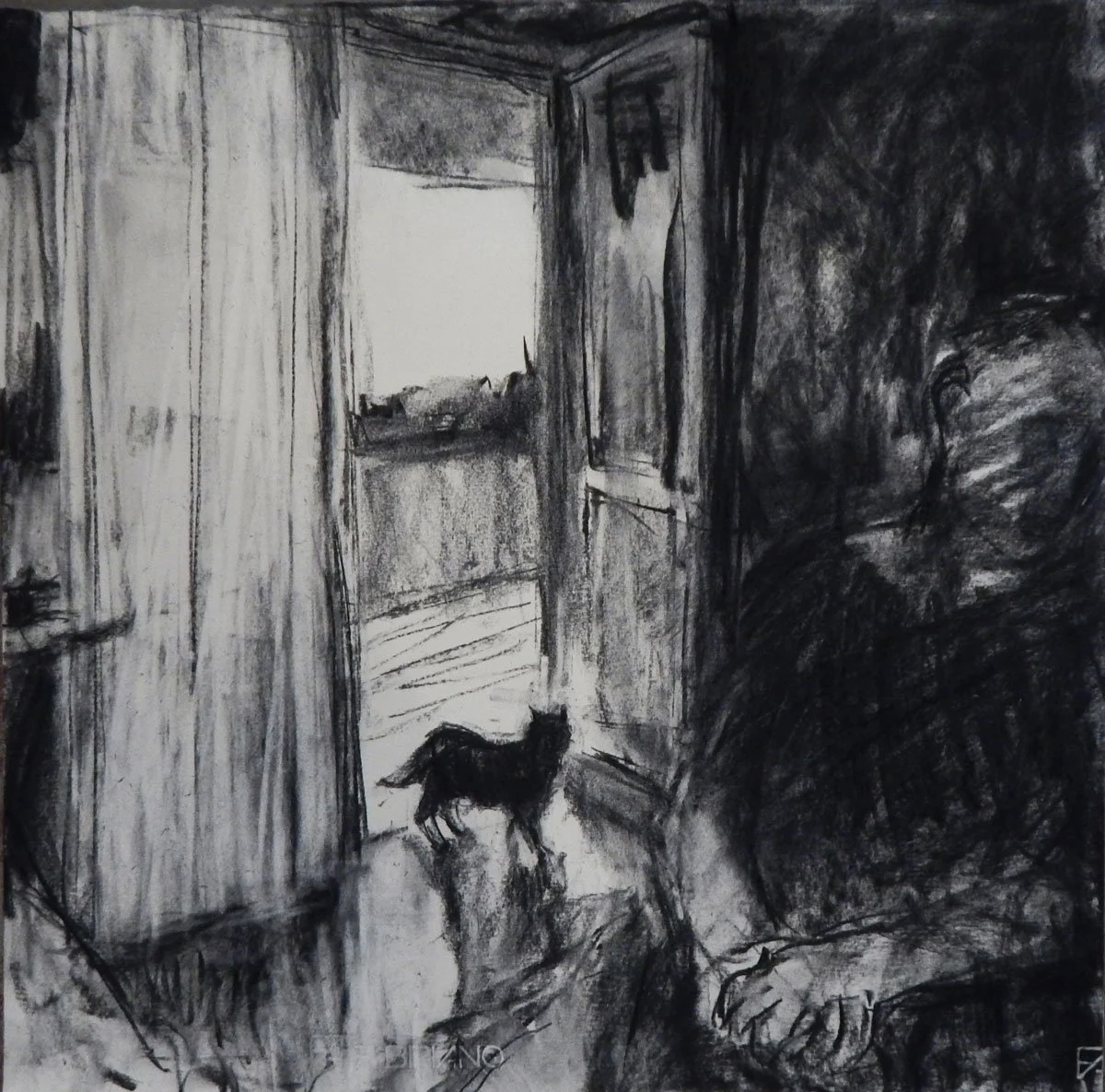 Window at Dusk charcoal on paper 22” x 21” 2022